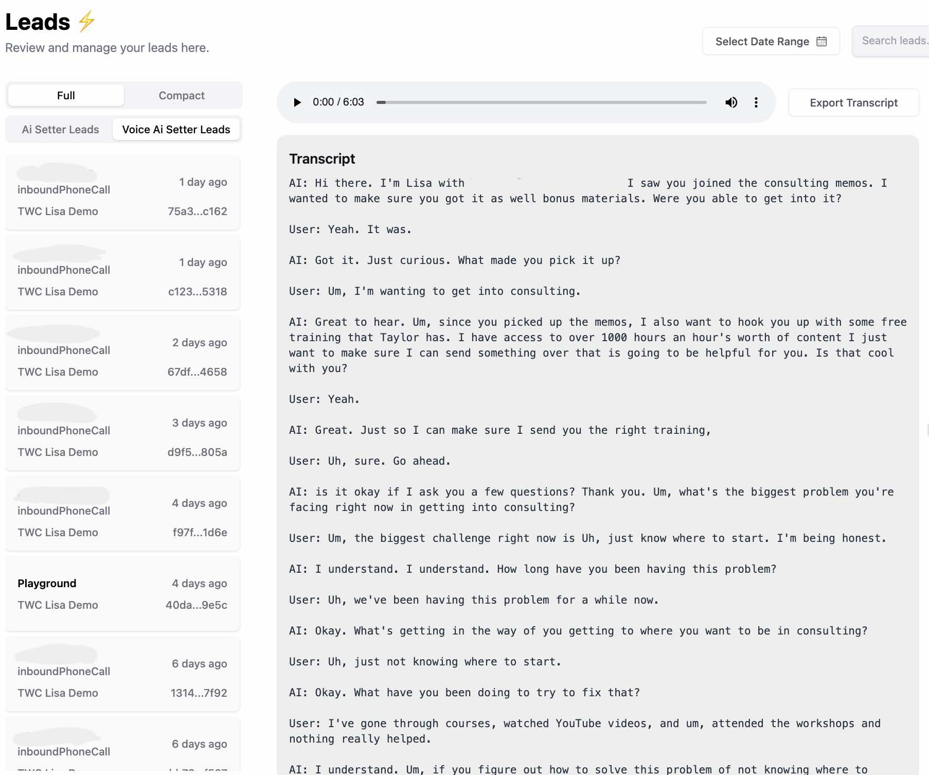 AI CONVERSATION AND VOICE RECORDING SAMPLES